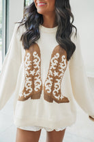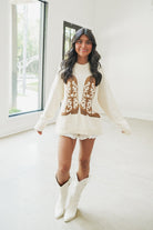 You’ll want to stay awhile and cozy up in this one! This super soft sweater features a relaxed fit and the cutest cowboy boot graphic for a touch of western charm. Perfect for slow mornings, road trips, or anytime you’re keeping it comfy but still a little bit cute.
