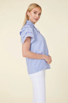 Stripe Flutter Sleeve Top - Blue/White - FINAL SALE