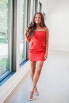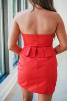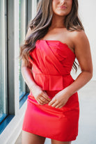Unleash your inner fashionista with the Sybil Mini Dress. This strapless and sleeveless dress features a gathered drape bodice design and a peplum style top, creating a flattering and stylish look. Perfect for any occasion, this fitted shift mini dress is a must-have for your wardrobe.