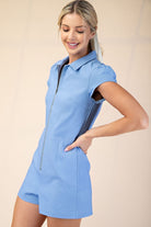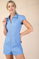 Step into effortless style with the Tina Romper in White. Featuring a short-sleeve design, a chic collar, and a convenient zip-front, this playful romper is perfect for sunny days and casual outings. Lightweight and easy to wear, it offers a fun, fresh look that keeps you comfortable from morning to night.