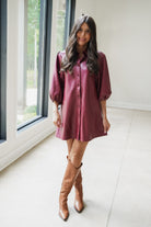 Our Faux Leather Dress with Puff Sleeves is your ticket to classic sophistication with a touch of edgy casual. Made from lightweight vegan leather, this tunic features three-quarter puff sleeves, a button-up front, and a classic collar. Paired with tights and a lightweight cardigan or jacket, this faux leather dress is ideal for the fall season, offering some warmth as well as a stylish, edgy appeal. Get ready to make a fashion statement with this comfortable and unique piece.