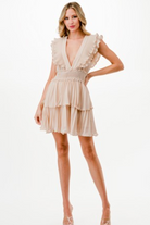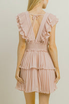 This playful Westwood Mini Dress in Vanilla features delicate pleated trim and a tiered ruffle design for flirty movement. The nude, smocked waist ensures a comfy, flattering fit, while the back tie adds a charming finishing touch. Perfect for sunny days and lighthearted moments.