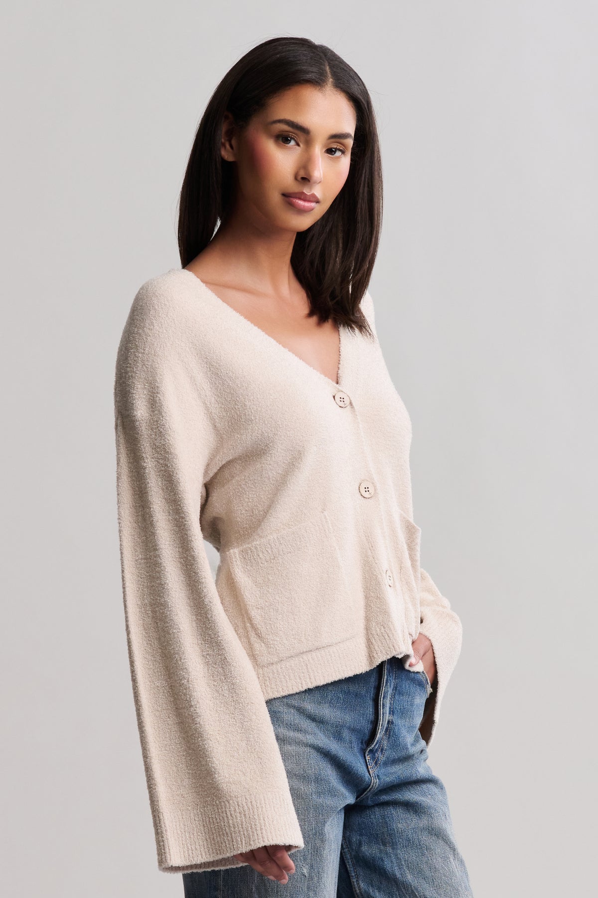 BAREFOOT DREAMS Wide Sleeve Front Cardigan - Stone