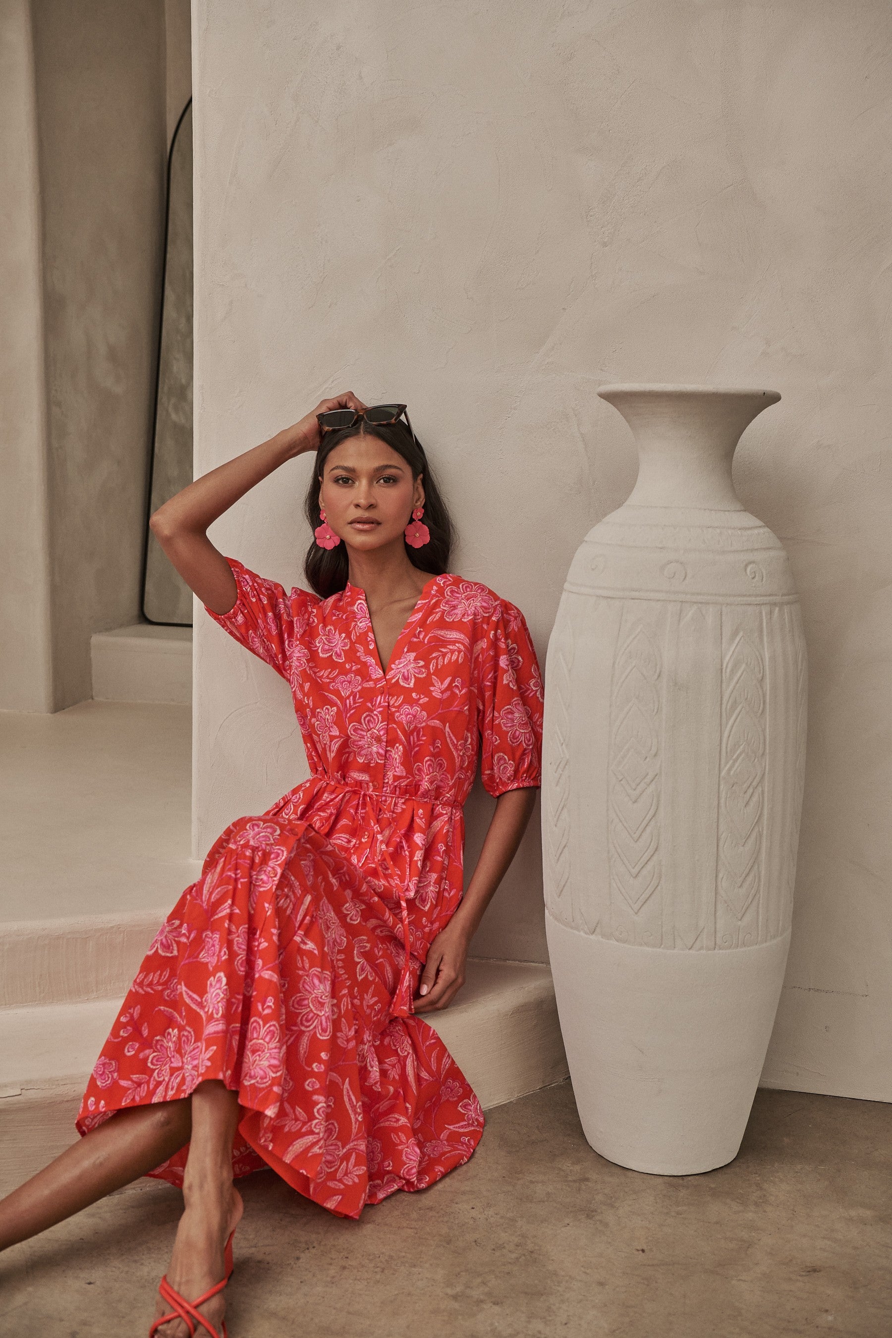 Aria Midi Dress - Red/Pink - FINAL SALE