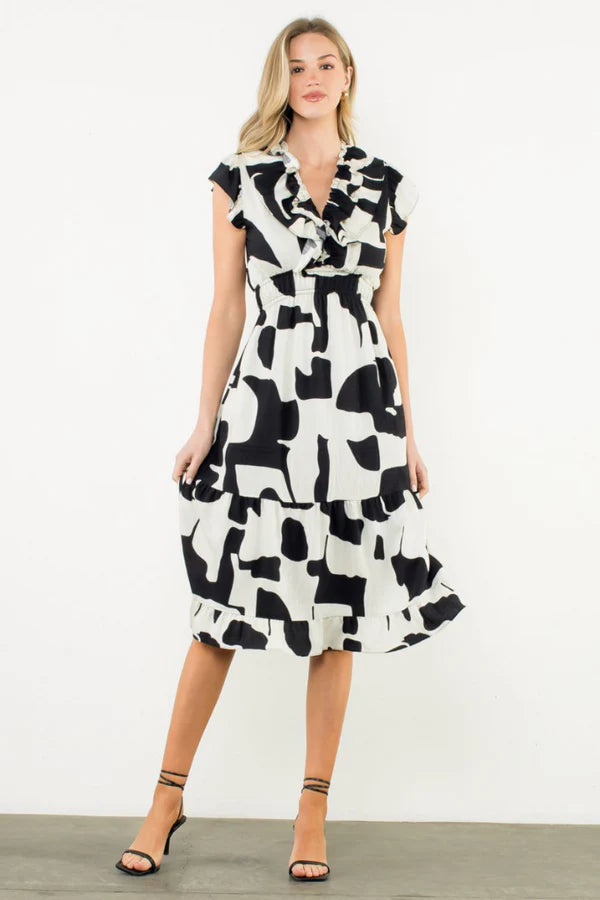 Aaliyah Midi Dress - Black/White