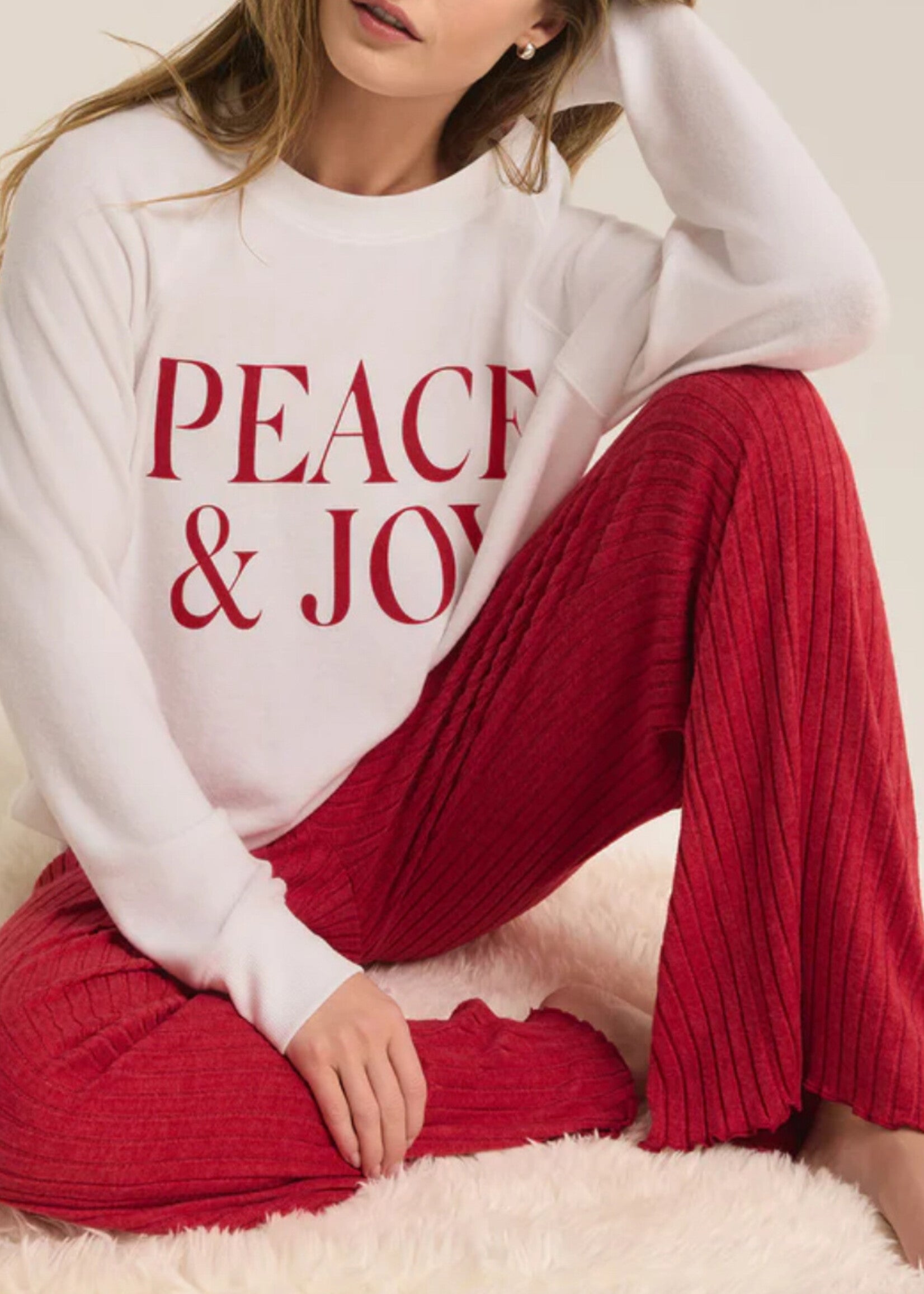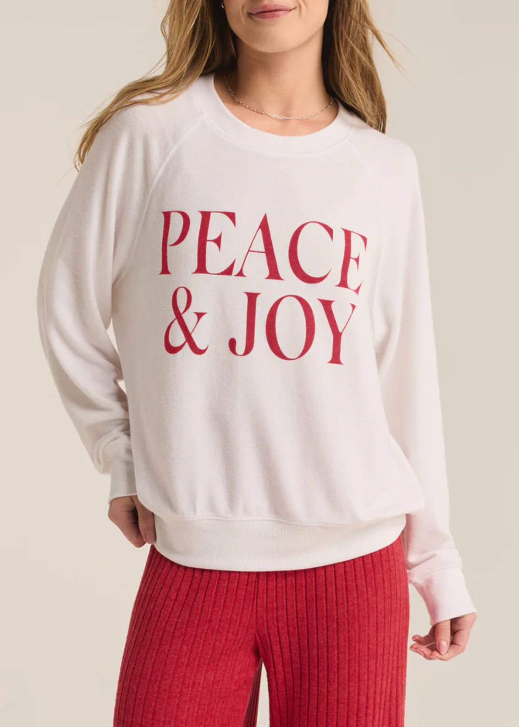 Z SUPPLY Cassie Peace & Joy Raglan - White - FINAL SALE