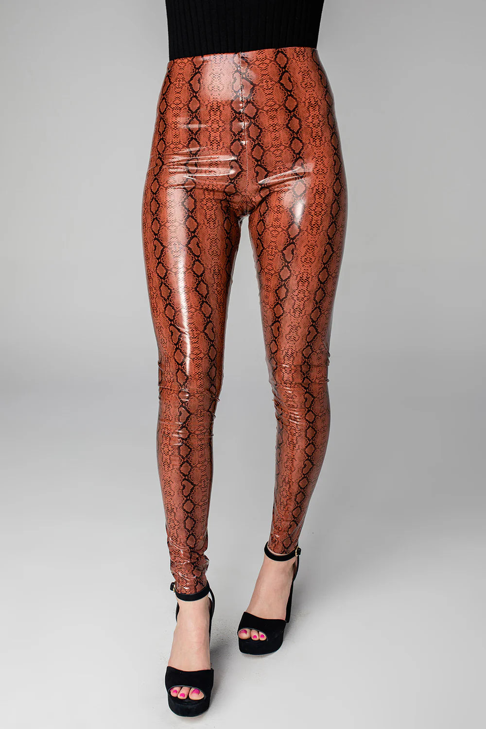 Faux Leather Snake Legging - Mocha Snake - FINAL SALE