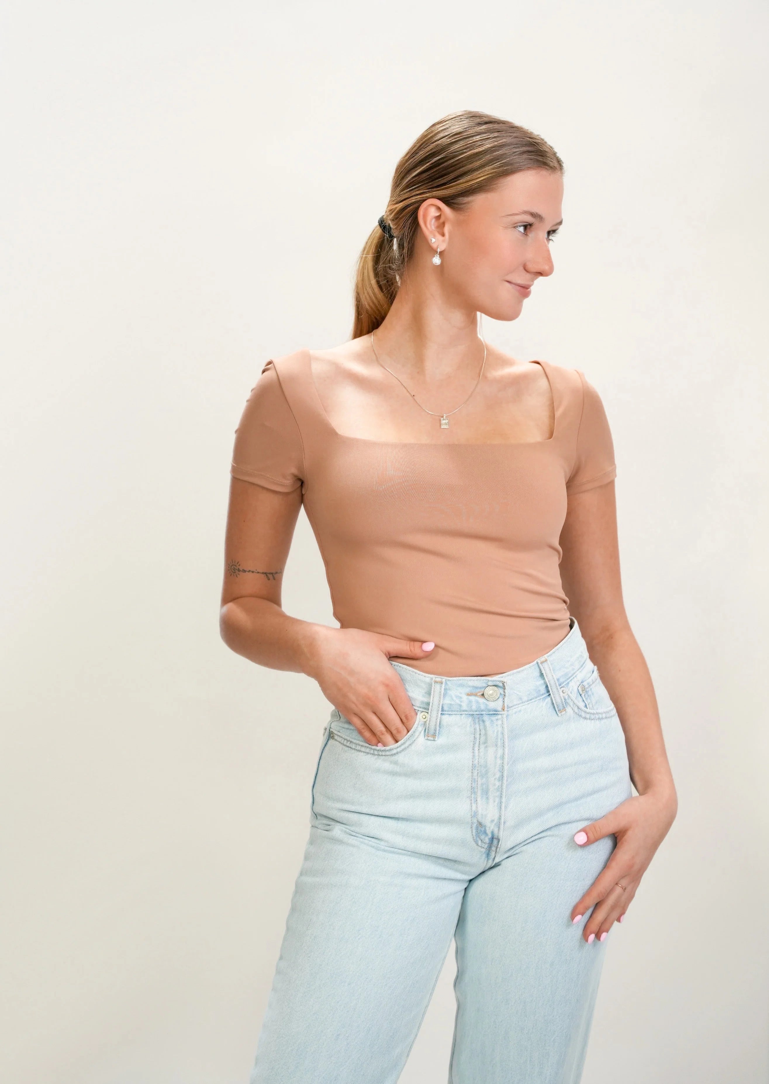 Stacy Short Sleeve Top - Latte Blush - FINAL SALE
