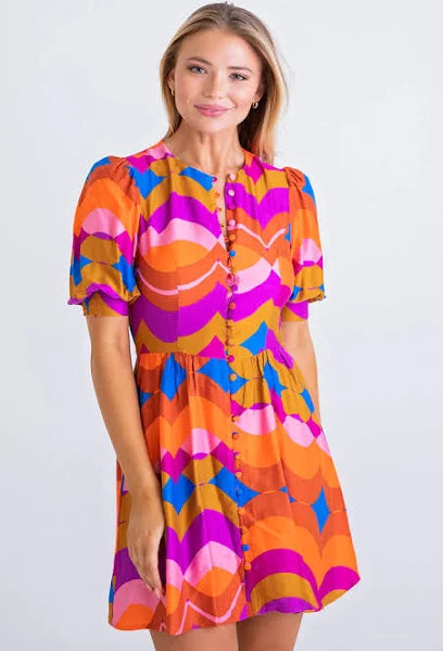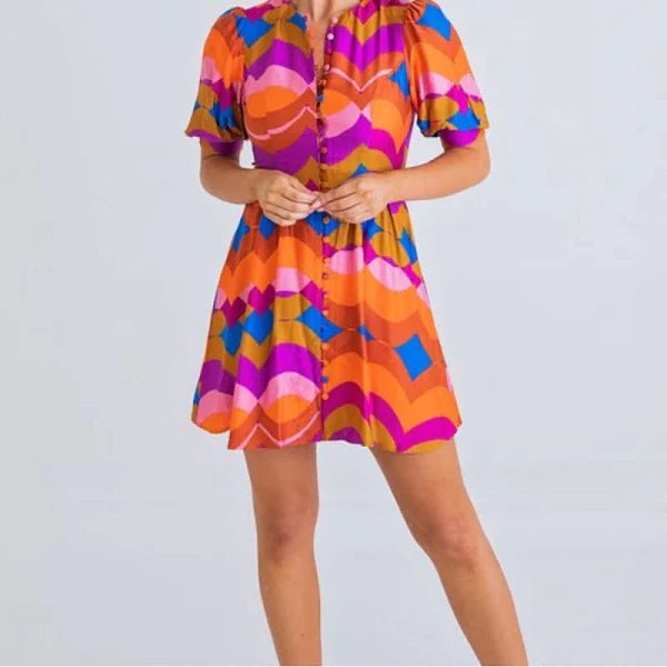 70's Button Puff Sleeve Dress - Orange - FINAL SALE