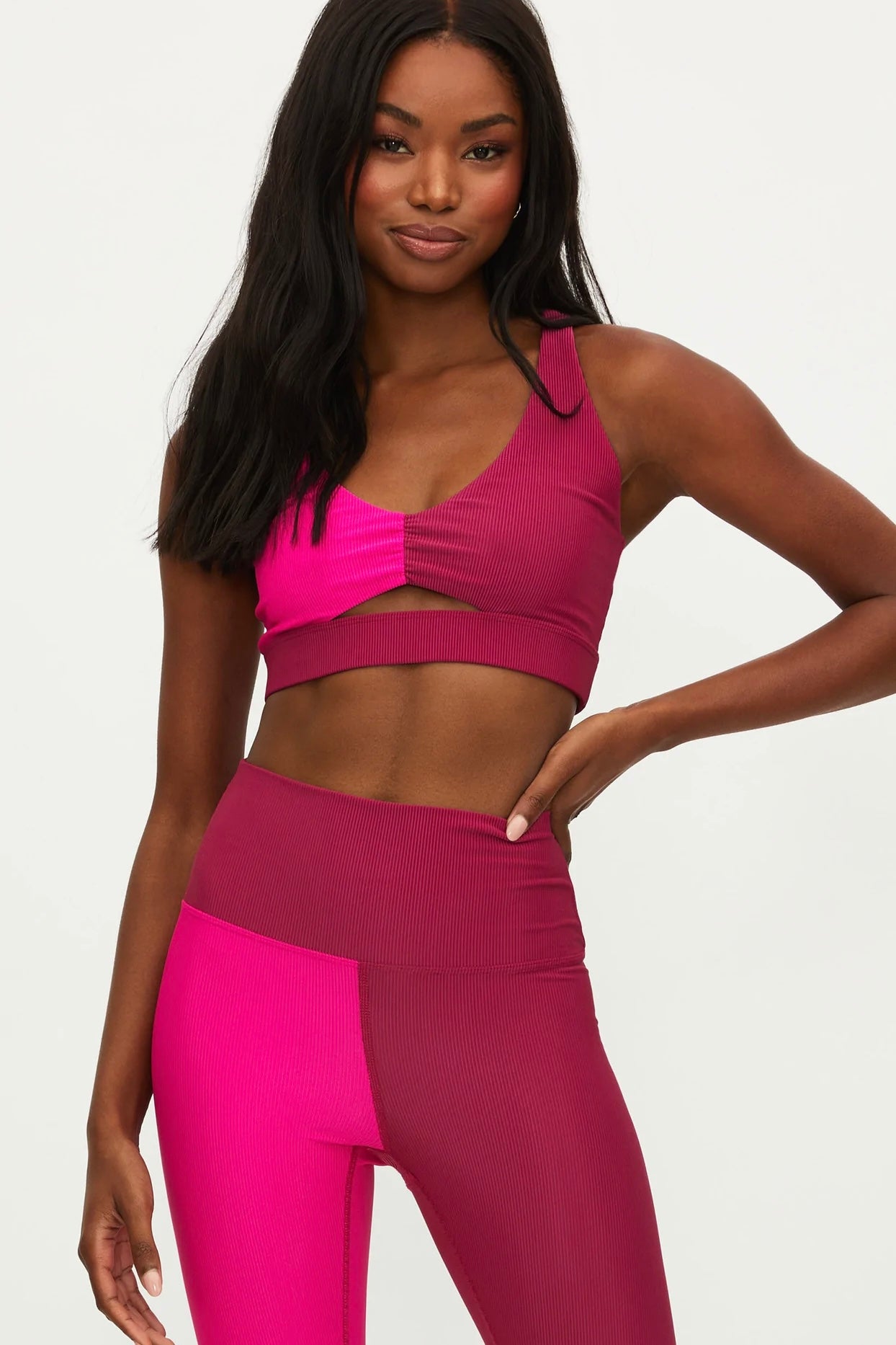 BEACH RIOT: The Mila Top is a new additon and a must add to your wardrobe. This top features a cut out in the front with cross straps in the back. In our ultra soft ribbed fabric in our Sweetheart colorblocking. Pair this top with the matching Genesis Leggings.