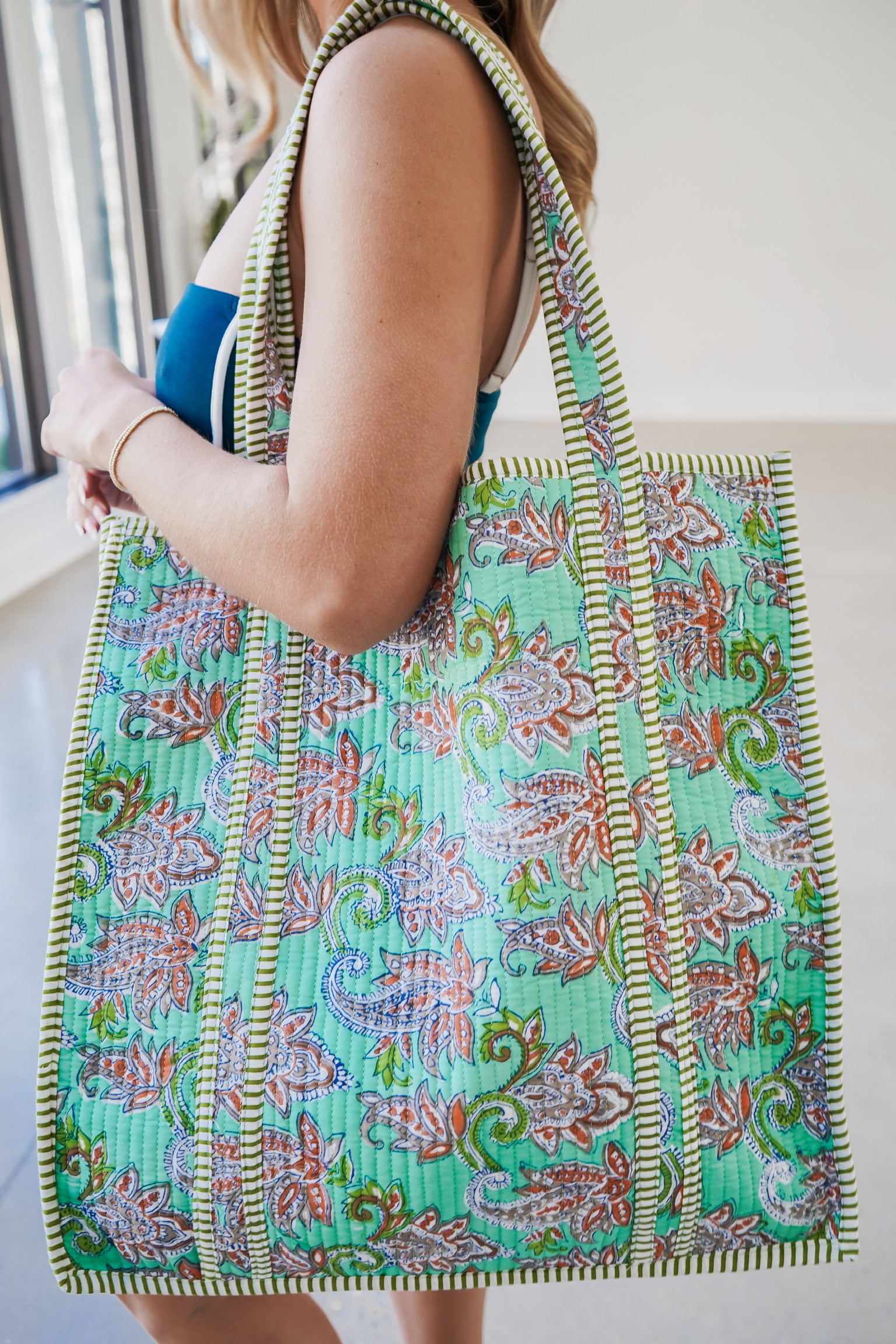 Quilted Tote Bag - Aqua
