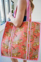 Carry your essentials in style with this stunning quilted tote bag crafted from 100% cotton! The exterior showcases an eye-catching floral print in vibrant hues, while the interior features a contrasting stripe pattern paired with a matching floral printed side pouch—perfect for organizing smaller items. Reinforced long straps make it comfortable for everyday wear, whether you're heading to the market, beach, or office. The open design offers easy access without the fuss of zippers, giving you a versatile bag that combines practicality with undeniable charm.