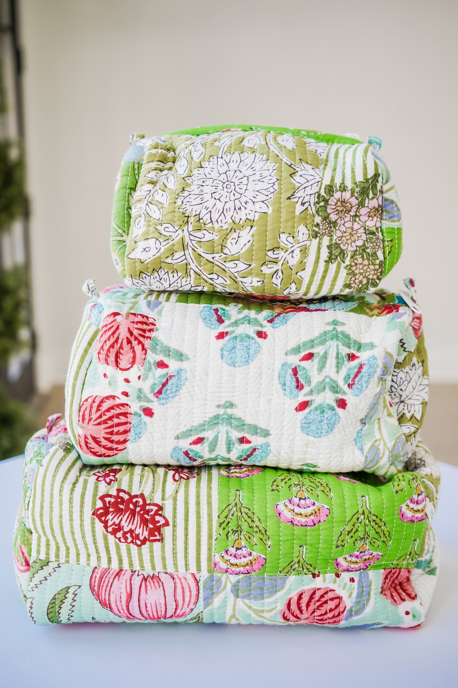 Organize your essentials in style with this charming quilted travel pouch. The eye-catching quilted patchwork design makes a statement while the full zip closure keeps your cosmetics secure. Inside, discover four dedicated pockets for smart organization, plus a wipeable plastic interior that handles spills and splashes effortlessly. Compact yet spacious, it's the perfect companion for weekend getaways, gym trips, or everyday touch-ups. Durable construction meets thoughtful design—everything you need to travel with confidence.