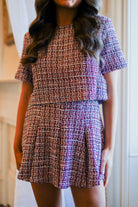 Experience sophisticated style with the As Always Mini Skort - Navy. Crafted from navy rainbow tweed, its pleated accents will add a touch of elegance to any ensemble. The matching top completes the look for an effortless, head-turning look you'll love!