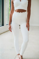 Our new fave Energy High Waisted Legging features scolloped detailing waistband and bottom, engineered to be thiner and lighter. It went through 4 fittings to be made incredibly flattering. It's romantic and elegant. It goes everywhere and offers that effortless chic. It's versatile and epic.