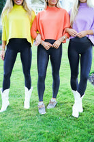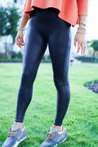 Faux Leather that flatters. This best-selling style features sleek, smoothing faux leather fabric that shapes and lifts and our contoured Power Waistband for core compression.