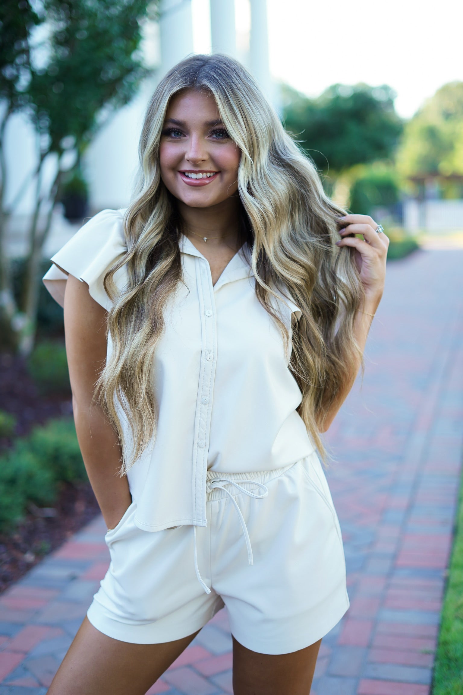 Stony Faux Leather Shorts - Cream - FINAL SALE