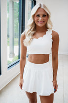 Our fluffy mini skirt is designed to keep you comfortable and stylish all day long. Featuring an elastic waistband, comfy inner shorts with pockets, this skirt is perfect for everyday wear.
