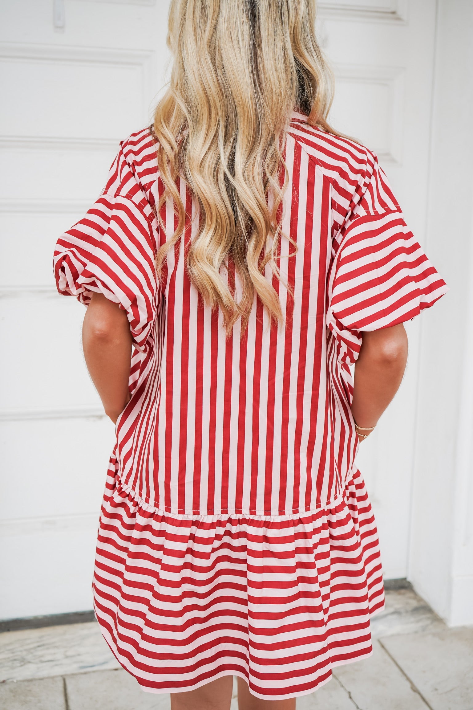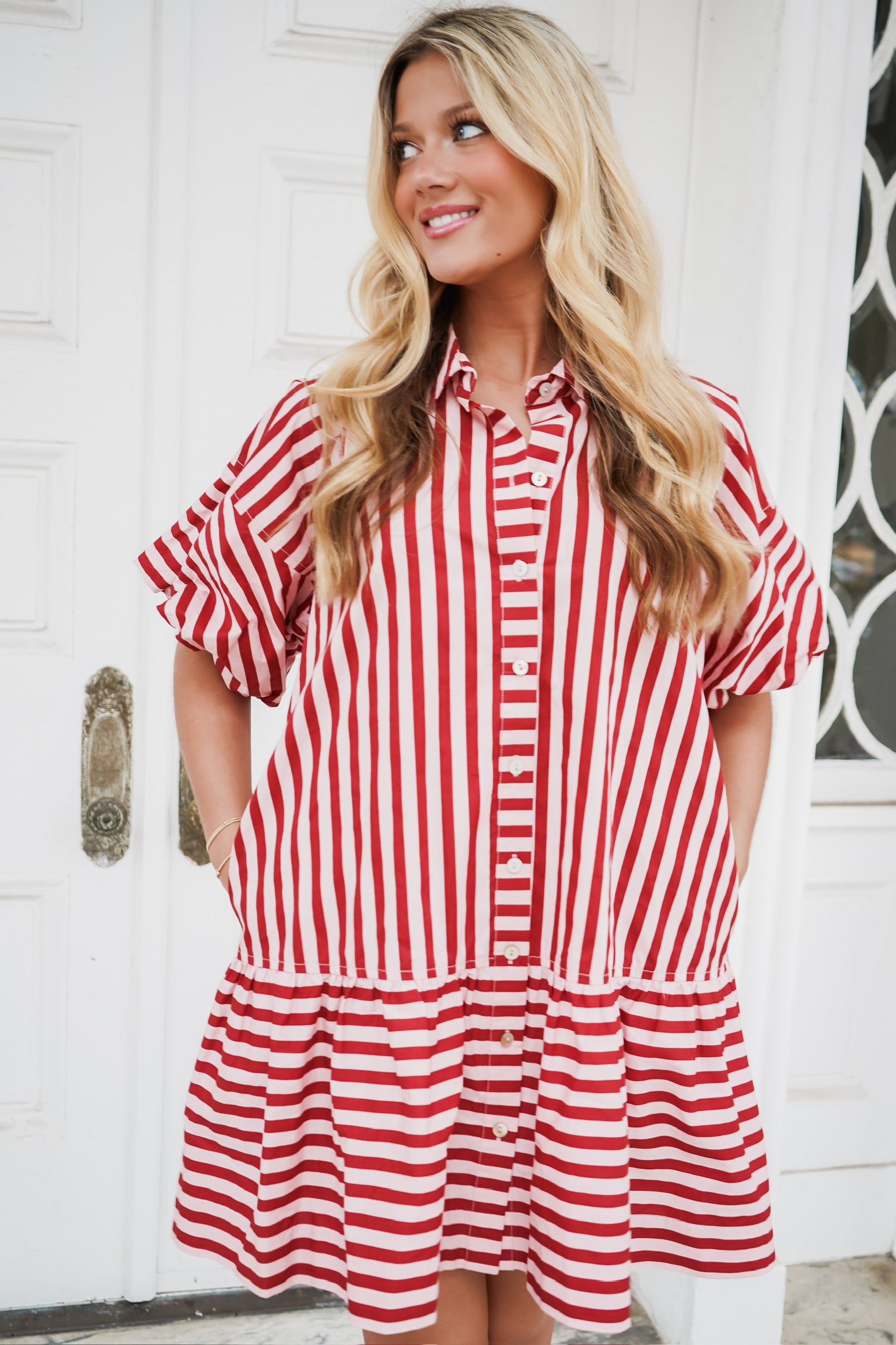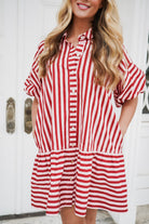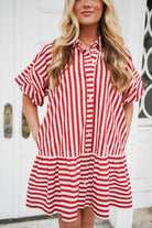 The Cally Mini Dress showcases a striking two-toned stripe pattern that blends vertical and horizontal lines for visual interest. This button-down shirt dress features a complete front closure with quality buttons, allowing for effortless styling versatility—wear it buttoned for a crisp, put-together aesthetic or leave it partially open for a relaxed vibe. The classic collared neckline adds structure and refinement, making this piece equally at home in professional environments or weekend settings. A modern take on a wardrobe essential that works harder than most pieces in your rotation.