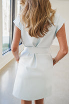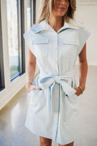 Faux Leather Sleeveless Belted Dress - Light Blue