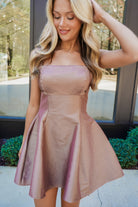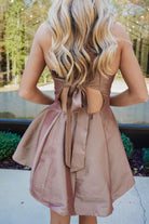 Turn heads in this flirty Georgie Mini Dress, a sleeveless skater style that's equal parts chic and fun. Wide shoulder straps frame a flattering square neckline, while the playful open tie bow detail at the back adds an unexpected twist. A strategic back cutout keeps things interesting, and the convenient back zipper makes getting dressed effortless. Perfect for nights out or making a statement at any occasion!