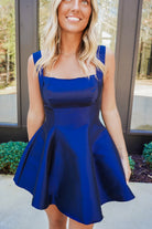 Turn heads in this flirty Georgie Mini Dress, a sleeveless skater style that's equal parts chic and fun. Wide shoulder straps frame a flattering square neckline, while the playful open tie bow detail at the back adds an unexpected twist. A strategic back cutout keeps things interesting, and the convenient back zipper makes getting dressed effortless. Perfect for nights out or making a statement at any occasion!