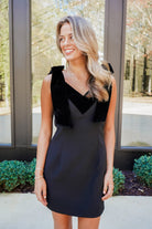 The Gigi Mini Dress is your go-to piece for effortless elegance with a playful twist! This sleek black shift dress features a fitted silhouette that skims the body beautifully, while luxe velvet trim adds a touch of texture and sophistication. The standout bow shoulder sleeves bring personality and movement, while the straight square back detail creates an unexpected modern edge. Perfect for nights out, cocktail events, or whenever you want to feel polished and put-together without trying too hard.