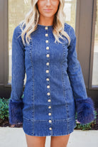 Turn heads in the Rockefeller Mini! This playful long-sleeve denim dress gets a luxe upgrade with faux fur cuffs, adding a fun twist to a classic-cool look. Throw it on with boots for city streets or heels for a night out, and you’re ready to rock it!
