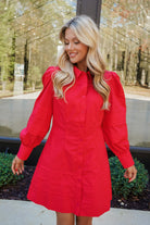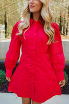 The Sallie Mini Dress brings playful charm to your wardrobe with its pin tuck detail and full front button-down closure. Featuring long cuffed balloon sleeves and a classic collared neckline, this dress blends flirty style with a touch of sophistication. Perfect for day-to-night looks that keep things fun and fresh.
