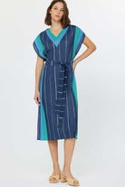 Effortless elegance meets fun in this sleeveless pleated midi dress! The flattering V-neckline draws the eye upward while the pleated silhouette creates beautiful movement with every step. A chic stripe border adds visual interest and keeps things playful. Perfect for brunch dates, garden parties, or whenever you want to feel put-together without trying too hard. The midi length hits just right for a sophisticated vibe that works year-round.