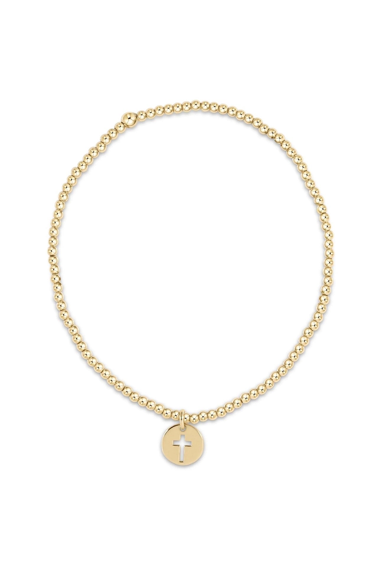 egirl Classic Gold 2mm Bead Bracelet - Signature Cross Small Gold Charm