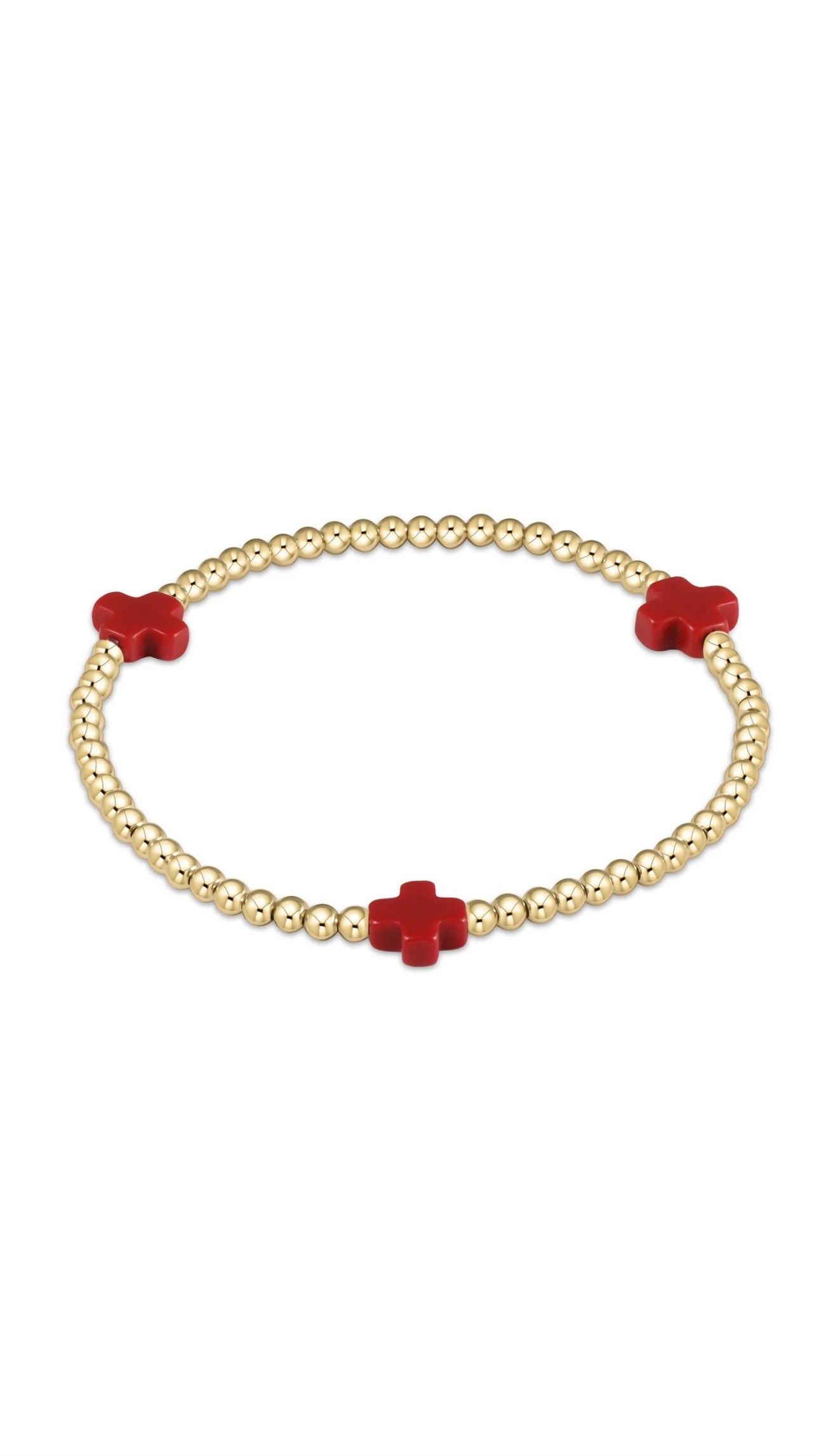 egirl Signature Cross Gold Pattern 3mm Bead Bracelet - Red