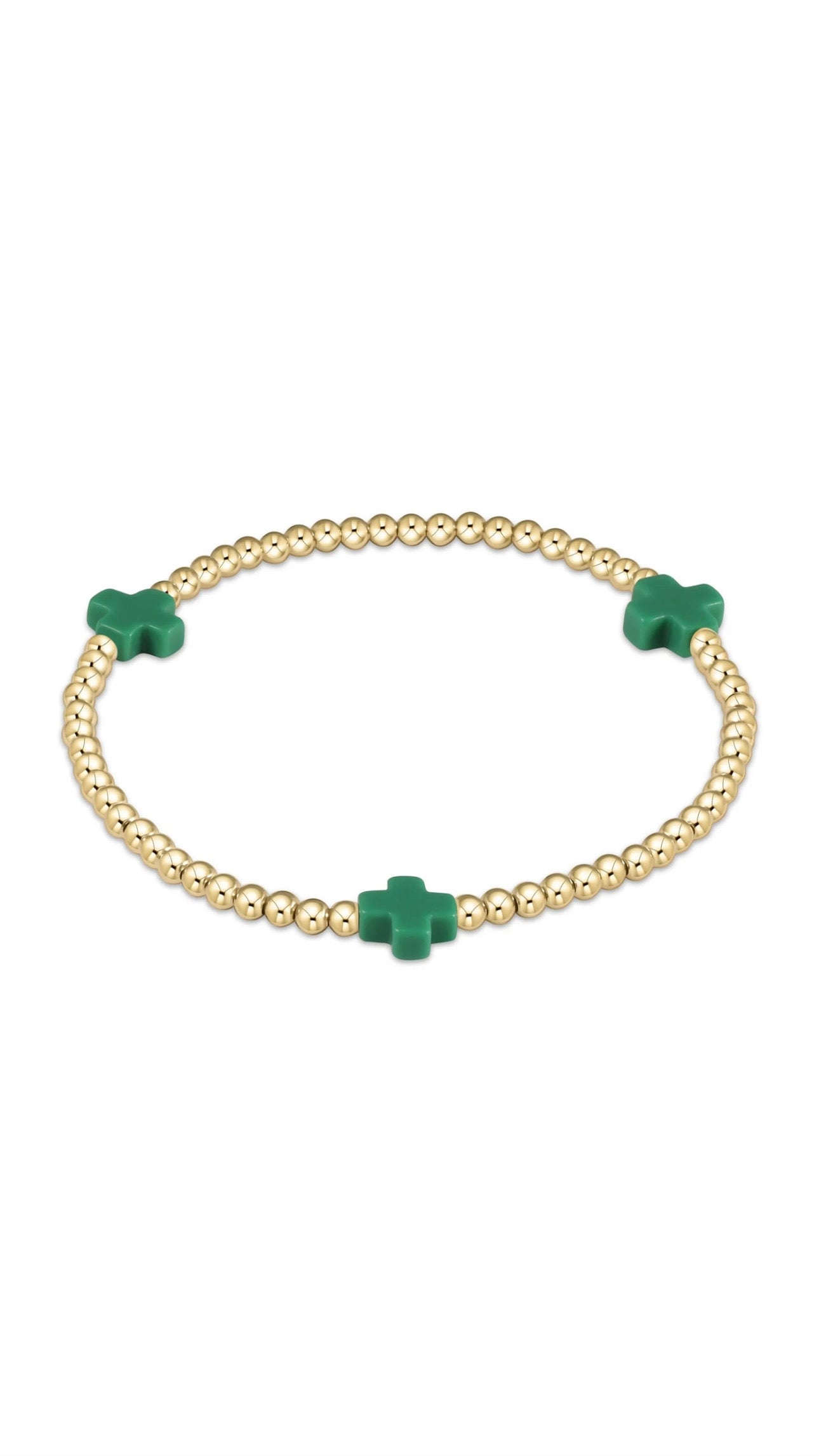 egirl Signature Cross Gold Pattern 3mm Bead Bracelet - Emerald