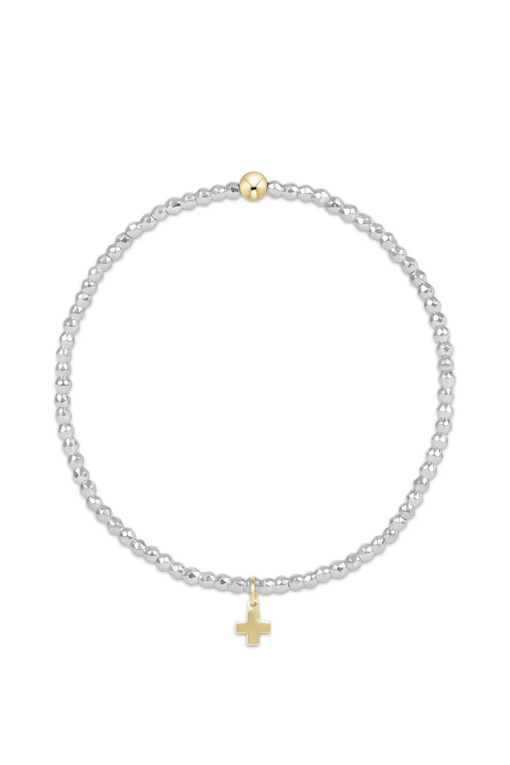 egirl Bright Silver Faceted Hematite 2mm Bead Bracelet - Signature Cross Gold Charm