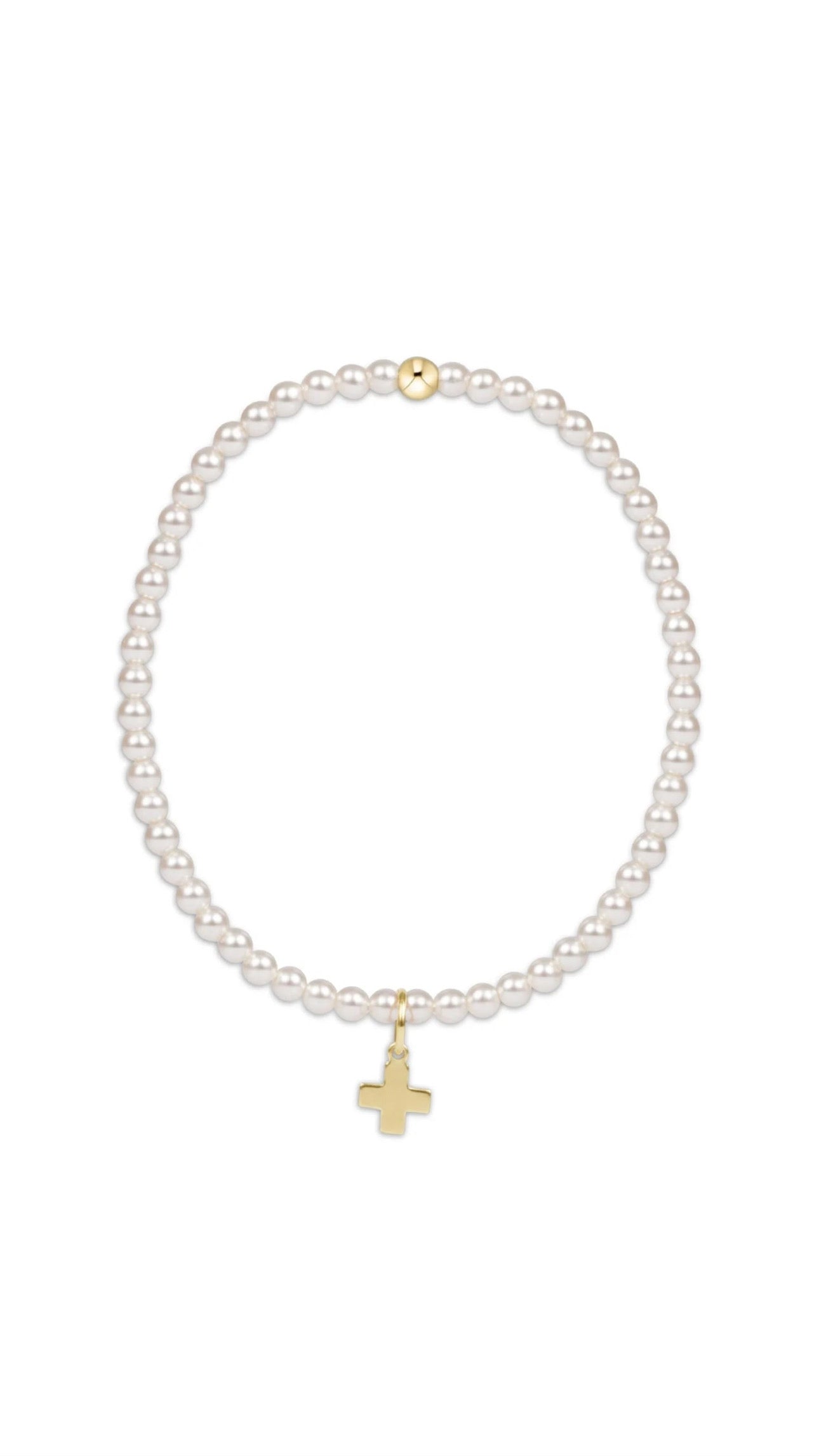 egirl Classic Pearl 3mm Bead Bracelet - Signature Cross Gold Charm