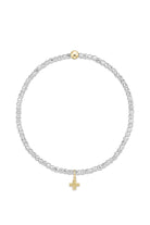 egirl Bright Silver Faceted Hematite 2mm Bead Bracelet - Signature Cross Gold Charm