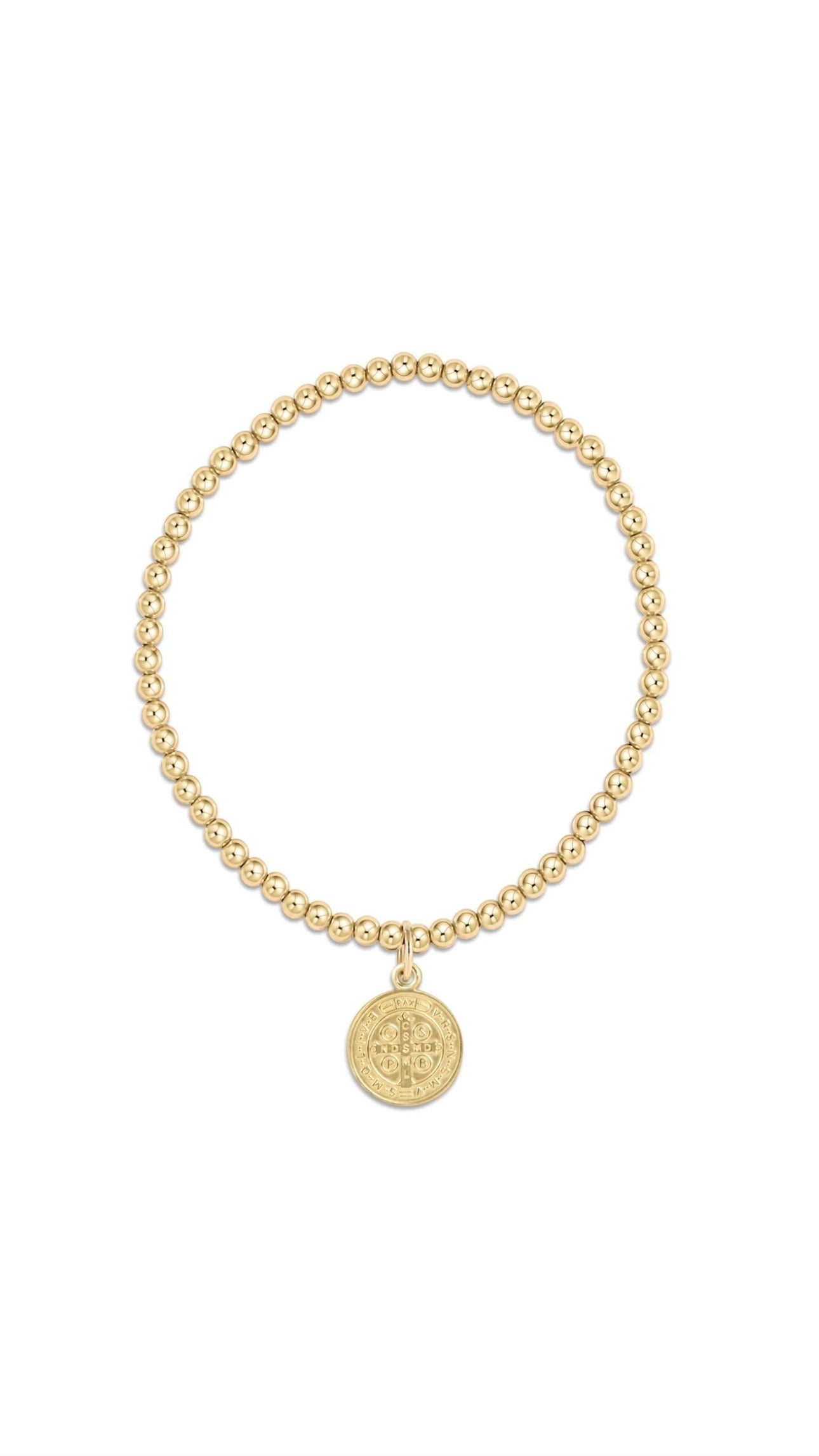 - Made with 3mm, 14kt gold-filled beads, 14kt gold-filled 12mm blessing disc featuring Saint Benedict
