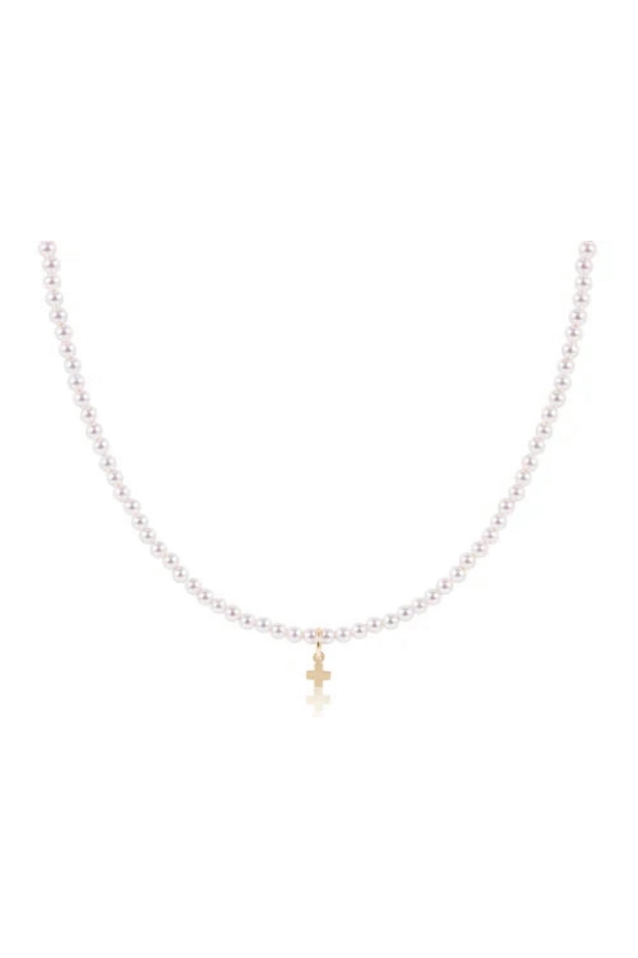 ENewton 15" Choker Classic Pearl 3mm Bead - Signature Cross Gold Charm