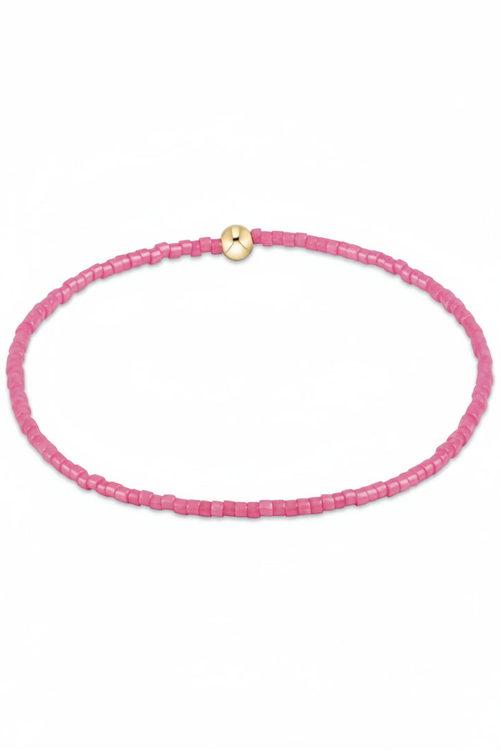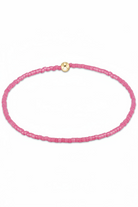 Hand beaded on high performance elastic for a slight stretch to easily roll on and off your wrist