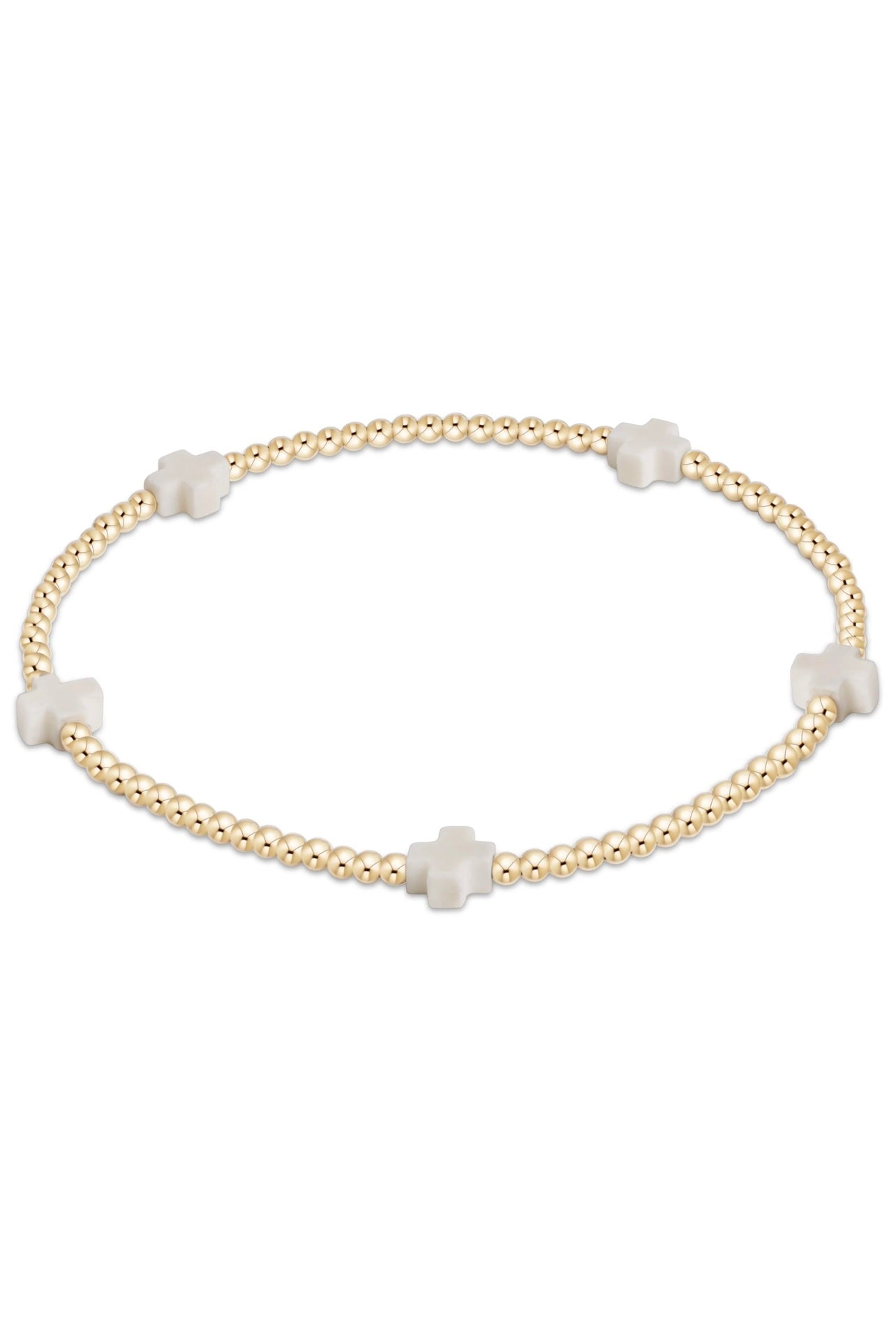 egirl Signature Cross Small Gold Pattern 2mm Bead Bracelet - Off White