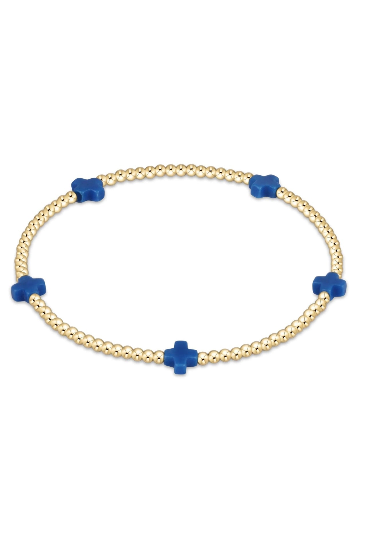 ENewton Signature Cross Small Gold Pattern 2mm Bracelet - Cobalt