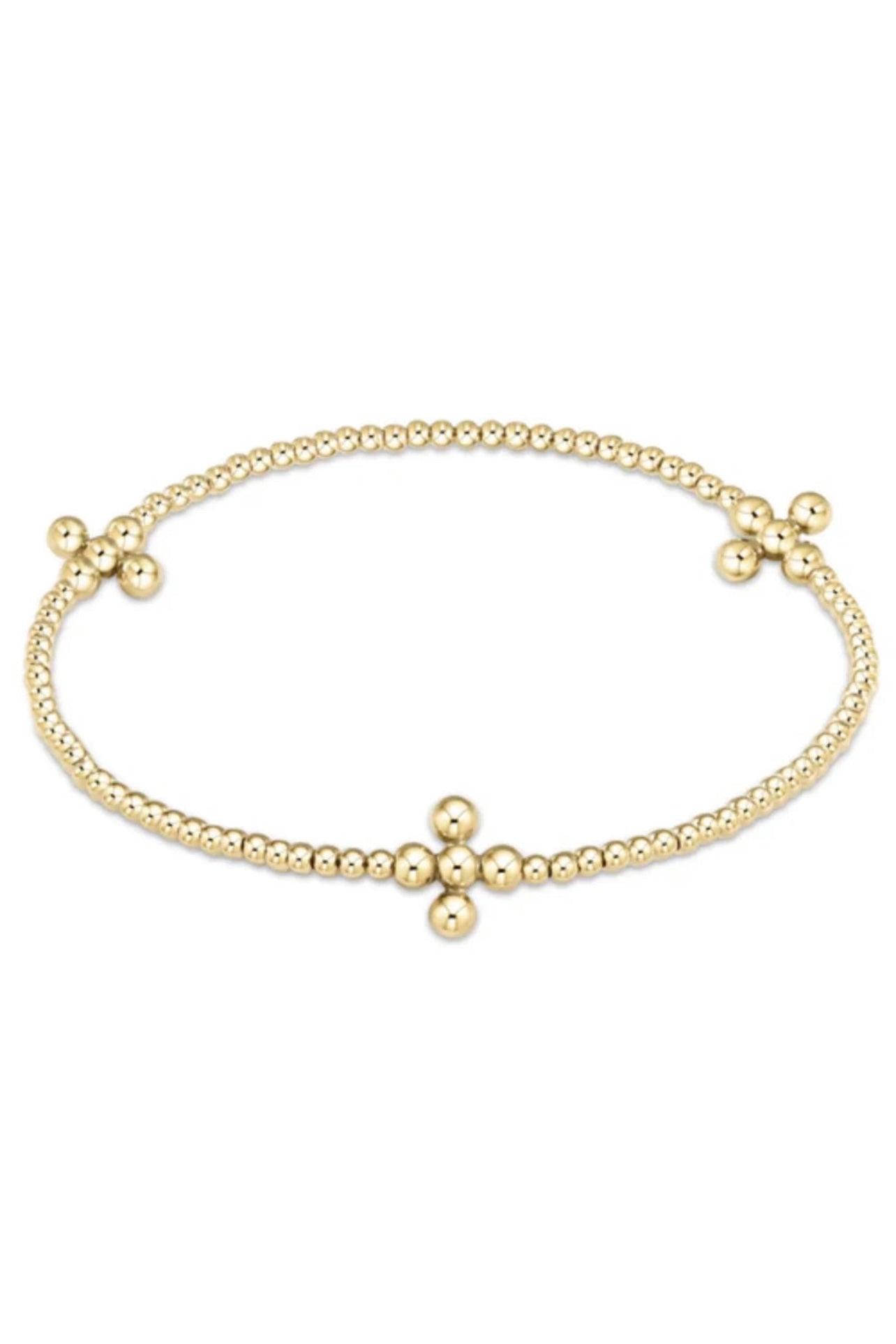 ENewton Signature Cross Gold Pattern 2mm Bead Bracelet - Classic Beaded Signature Cross Gold - 3mm Bead Gold