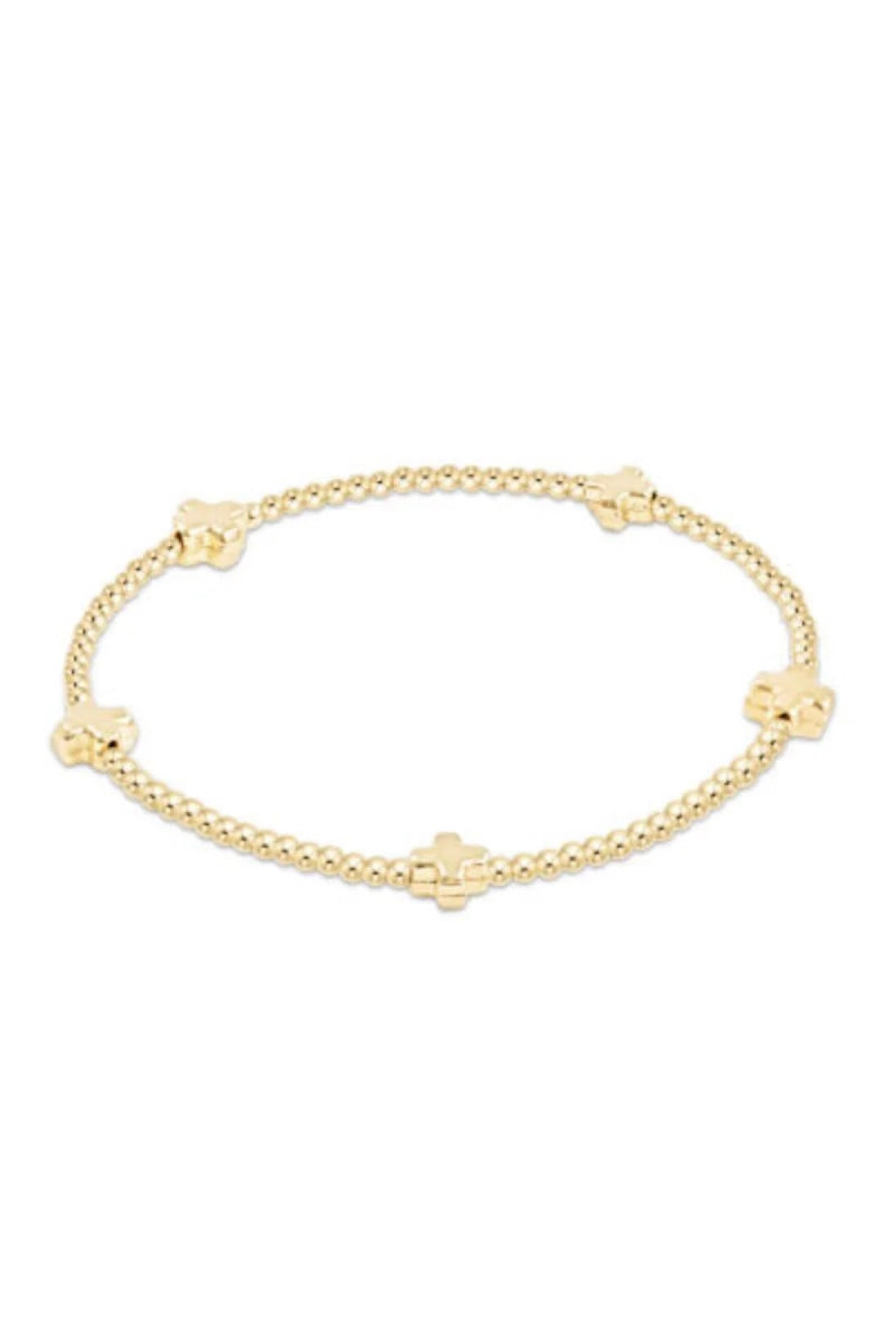 ENewton Signature Cross Small Gold Pattern 2mm Bead Bracelet - Gold