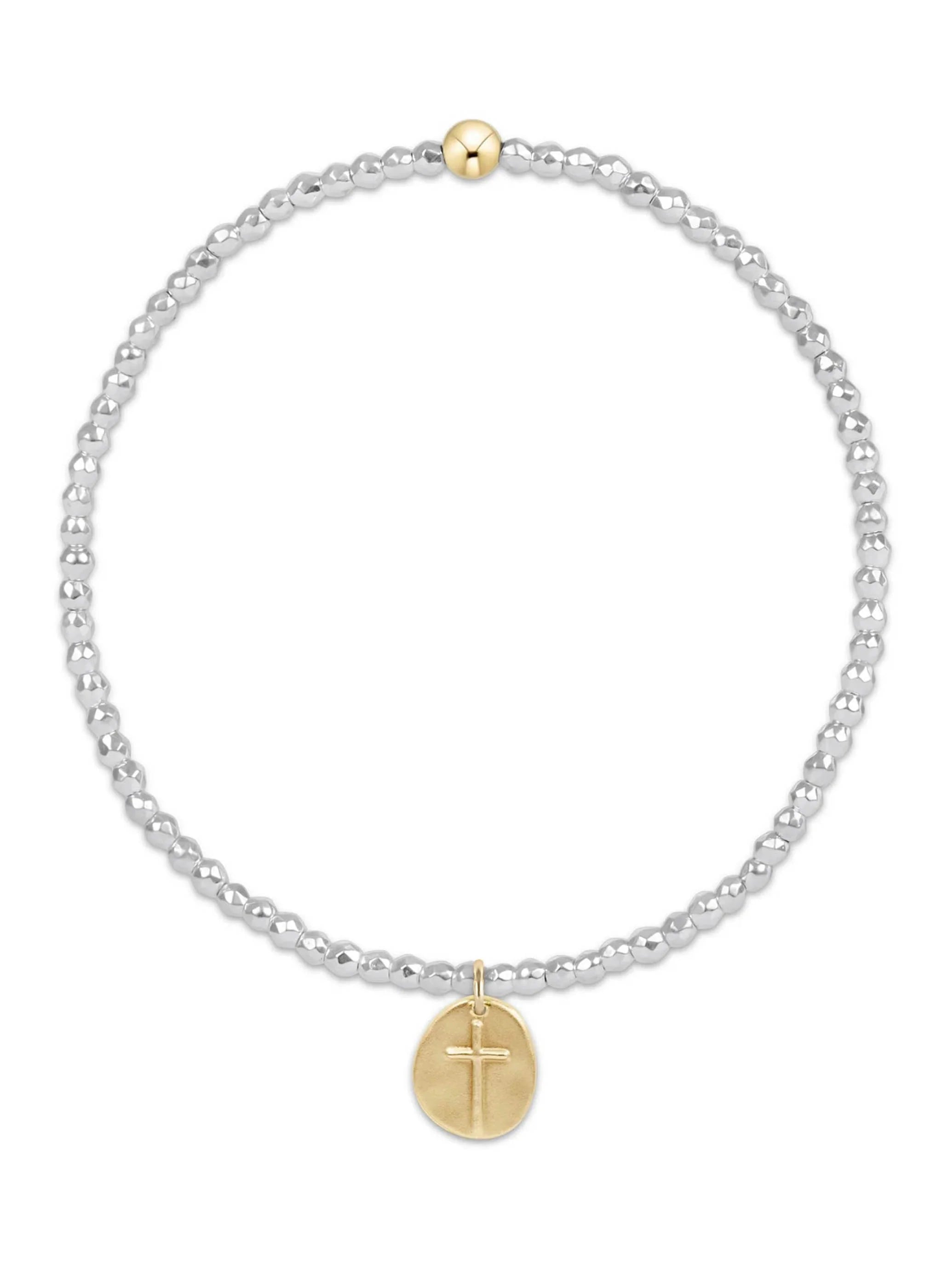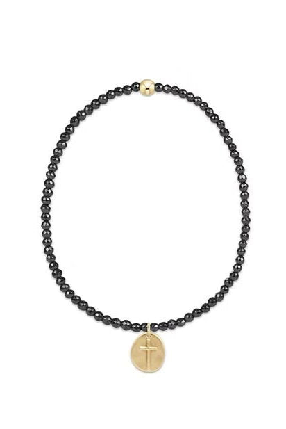 ENewton Faceted Hematite 2mm Bead Bracelet - Signature Cross Gold Charm