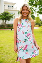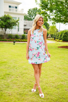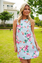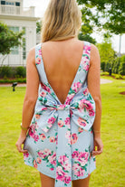 Take on new adventures with our Ansley Mini Dress! This light blue sleeveless shift dress hugs your figure and features a high neckline for a daring look. The low back plunges into a deep v-neckline, accented with a playful bow. Stay bold and stylish with this mini dress.