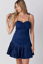 Meet the Blake Dress in navy, your new go-to for effortless fun. With a sweetheart neckline adorned by soft pleats and delicate spaghetti straps, it’s all about flirty vibes. The ruched style adds texture and shape, while the hidden back zipper keeps things sleek. Perfect for dancing the night away or brunch with friends!