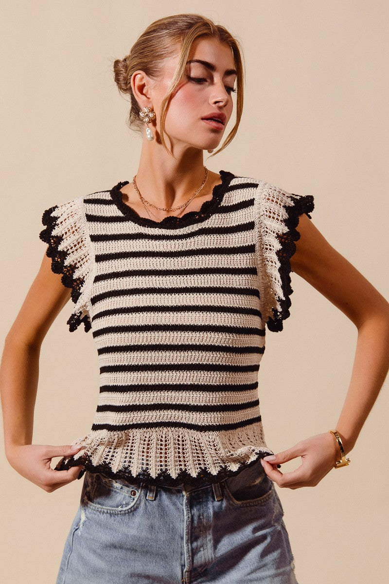 Cabello Sweater Top - Oatmeal/Black - FINAL SALE