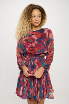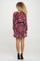 Make a statement with this vibrant floral mini dress, perfect for adding a pop of color to your wardrobe. Featuring a striking floral pattern, this dress is designed with long sleeves and a round neckline, offering a balanced blend of elegance and boldness. The adjustable belt at the waist enhances the silhouette, creating a flattering fit that flows into a playful skirt. Ideal for daytime outings or evening occasions, pair it with boots for a trendy look or heels for a more polished style. This dress is sure to turn heads wherever you go!