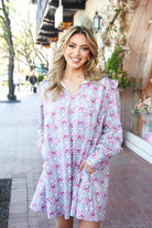 Introducing our Frenchie Mini Dress in a beautiful blue and pink floral print that is sure to turn heads! This best-selling dress features a flattering v-neckline and a playful ruffle babydoll design. Feel confident and stylish in this must-have addition to your wardrobe!