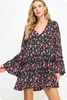 Elevate your wardrobe with the Jayme Dress! With a versatile black design, stunning multi floral pattern, and flattering v-neckline, this dress is perfect for any occasion. The long sleeves and tiered ruffle skirt add a touch of elegance and style, making you stand out in any crowd. Must-have for fashion-forward individuals!